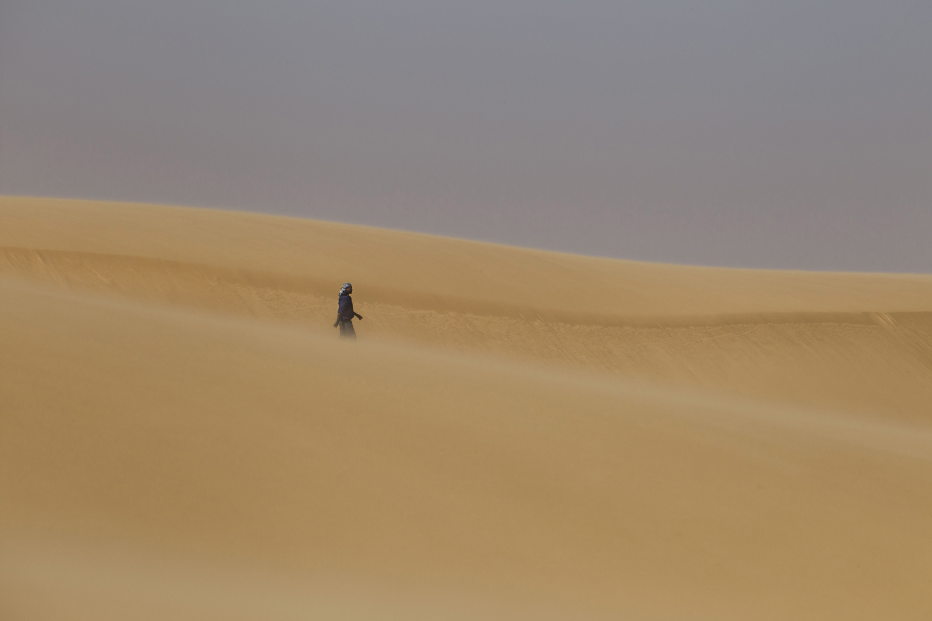 A tratti la sabbia compatta ci permette di avanzare a passo spedito, a tratti si trasforma in polvere finissima e impalpabile che ci risucchia.